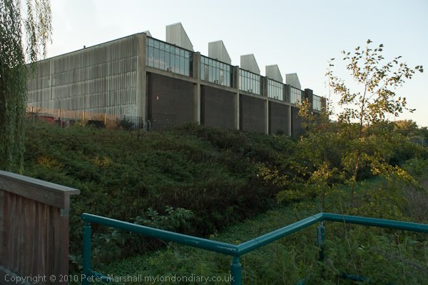 On a fine sunny day in October 2005 I put my Brompton on the train around noon and went to Clock House in the deep south of London. The station is a few yards from the Pool River, which is joined not far away by another of the tributaries of the Ravensbourne, the Beck. I had some unfinished photographic business a little further north, at Bell Green, around the 'superstore' developed on part of the former gas works there, and then intended to ride as much as possible along by the river (it joins the Ravensbourne at Catford) to the Thames at Greenwich and then through the foot tunnel and on to Hackney Wick.